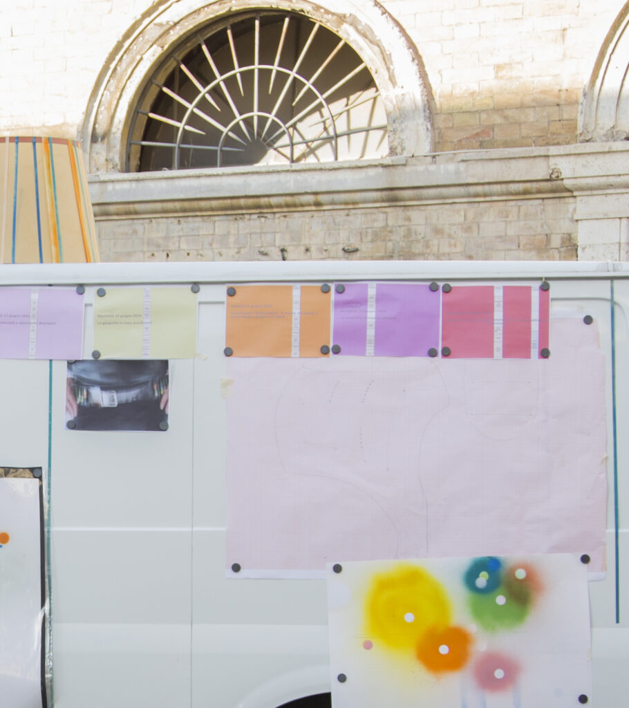 Oggetti resistenti, carte e progetti di viaggio ma anche giochi, gadget e accessori da indossare per partecipare ad un’ipotesi di geografia nomade, meno monade; indossarne le sponde, abitarla in sospensione e tra le pieghe, resistendone gli urti, gli strappi, estendendo le proprie membra e coordinate in gesti di cura e nuovi ormeggi.